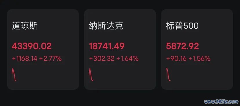 当地时间周三,美股大幅高开。截至记者发稿时,标普500指数涨1.56%,纳斯达克指数涨1.64%,道琼斯指数涨2.77%。