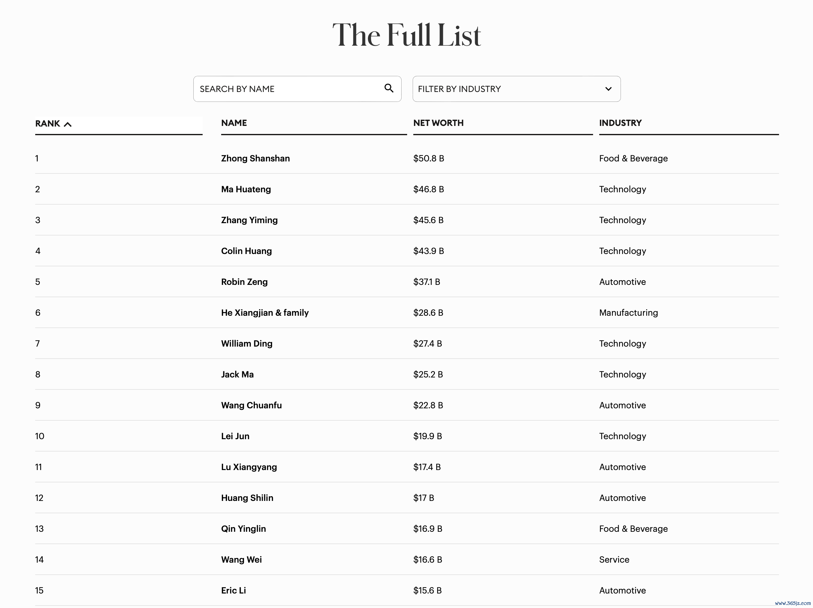拼多多创始人黄峥则跌至第四位,尽管他增加了77亿美元的财富,总财富达到439亿美元。